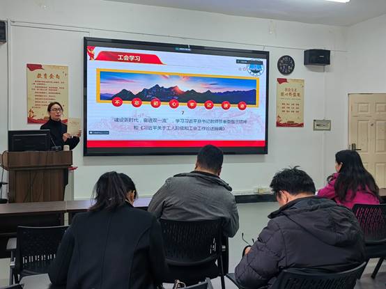 分工会主席杨姗姗老师带领全体会员学习了相关内容,党的十八大以来,习近平总书记高度重视工人阶级和工会工作,围绕工人阶级和工会工作多次发表重要讲话、作出重要指示,深刻阐明了工人阶级和工会工作的地位作用、目标任务、实践要求。论述摘编引导党员、干部把全面学习和重点学习结合起来,干什么就重点学什么、缺什么就重点补什么,增强学习的针对性,切实把学习成效转化为谋划推动工会工作创新发展的思路举措。