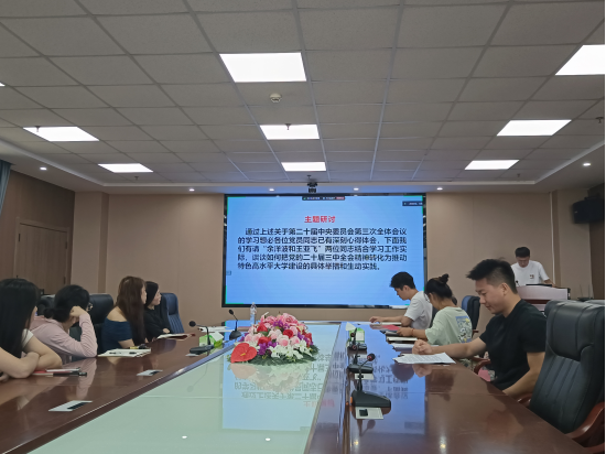 主题研讨环节,首先由余洋波同志分享体会,结合LETOU国际米兰官网如何更好地运用党的二十届三中全会精神助力学校更好地发展成为特色高水平大学,进行了个人见解。再由王亚飞同志分享自己的体会,提出要立足自身,并指出今后将继续加强党纪学习,理论结合实际,在实际生活中展现出对政治原则、政治方向的坚守和践行。