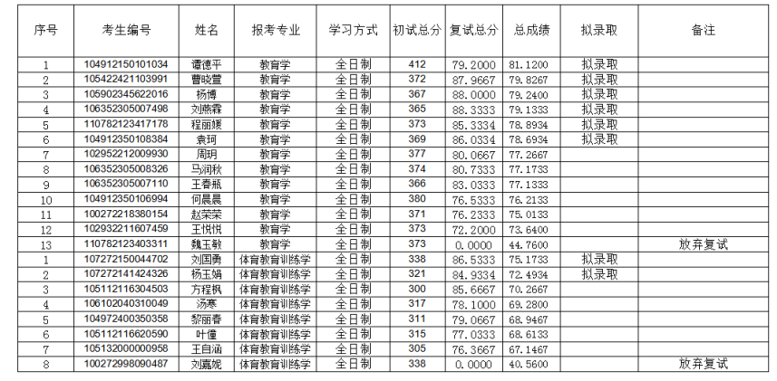 根据往年情况,存在少量考生放弃拟录取资格或者新增招生计划,如果出现上述情况,将根据学院招生计划、专业需求、综合成绩等方面综合考虑,从已通过复试的考生中按照总成绩依次拟录取。