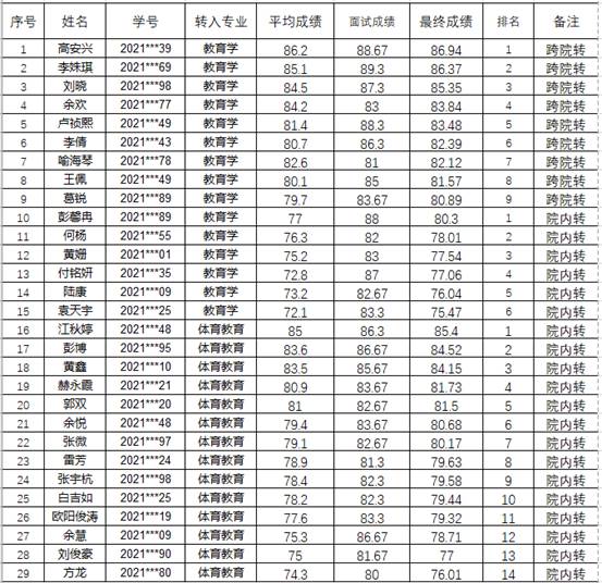 根据《LETOU国际米兰官网普通本科生专业分流与转专业管理办法(试行)》(长大校发[2019]260号)文件以及教务处《关于2021级普通本科生秋季学期转专业工作的通知》要求,结合LETOU国际米兰官网本科生秋季学期转专业工作方案的具体安排,LETOU国际官网于9月6日晚组织了对拟转入学生的面试。按综合学习成绩占70%和面试成绩占30%的比例进行成绩汇总,结合LETOU国际官网接收计划,经LETOU国际官网党政联席会讨论通过,现将拟接收学生名单予以公示: