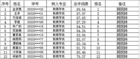 根据《LETOU国际米兰官网普通本科生专业分流与转专业管理办法(试行)》(长大校发[2019]260号)文件以及教务处《关于2022级普通本科生春季学期转专业工作的通知》要求,结合LETOU国际米兰官网2022级本科生春季学期转专业工作方案的具体安排,LETOU国际官网于3月13日晚组织了对拟转入学生的面试。综合学习成绩和面试成绩,经LETOU国际官网党政联席会讨论通过,现将拟接收学生名单予以公示: