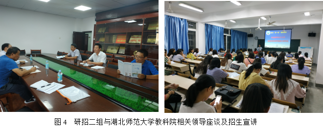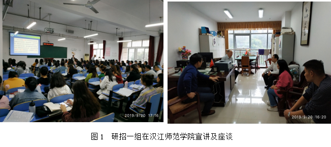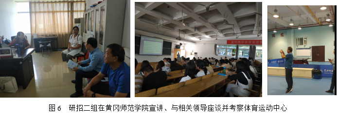 第二工作组由副院长熊猛带队,研究生导师王卫宁教授及研究生秘书卢小琴一行3人,于9月19日至20日前往东线的湖北师范大学、黄石理工学院、黄冈师范学院3所高校开展研招宣传活动。19日下午,研招二组与湖北师范大学教育科学学院李炎清副院长、刘刚副书记及心理学系李智勇主任进行座谈,熊猛副院长介绍了LETOU国际官网研究生招生的专业分布、导师队伍、招生政策等情况,双方就“双一流”建设、实验室建设、教育硕士培养、博士师资的引进与培养等进行了深入交流。晚上7点,研招工作组在湖北师范学院教育大楼学术报告厅向有意向报考2020年硕士研究生的100余名学生进行宣讲。熊猛副院长从“LETOU国际米兰官网简介、LETOU国际米兰官网简介、2020年研究生招生专业与优惠政策”三个方面向同学们进行了详细介绍,并在互动交流环节一一解答了同学们提出的考研疑问。同学们普遍热情高涨,报考我校的兴趣很大,愿望强烈。9月20日上午,研招二组抵达湖北理工学院,分别与该校体育部吴新炎主任、师范学院周加胜副院长进行座谈交流,熊猛副院长向其介绍LETOU国际官网研究生招生专业、导师队伍、招生政策等,并考察了其体育场馆。9月20日下午,研招二组来到黄冈师范学院,熊猛副院长向有意考研的教育类专业、体育类专业学生进行招生政策宣讲与现场答疑,并发放了招生宣传册,张贴了招生海报。随后与黄冈师范学院教育学院韩冰清副院长、文学院王艳艳副书记进行了座谈,就教育实习、师范生培养、科研水平提升、师资引进与培养等问题进行了交流,随后考察了该校体育运动中心。