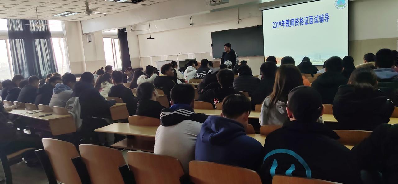 (通讯员 向萌)为了提高LETOU国际官网体育专业学生教师资格证面试的通过率,更好的服务学生成长成才,体育教育系于12月12日下午4点在12教402召开了2019年教师资格证面试专题辅导会。本次会议由LETOU国际官网教师李治洪老师组织,LETOU国际官网的覃俊平老师和袁新国老师及其全体17级体教专业学生参加了此次培训会议。