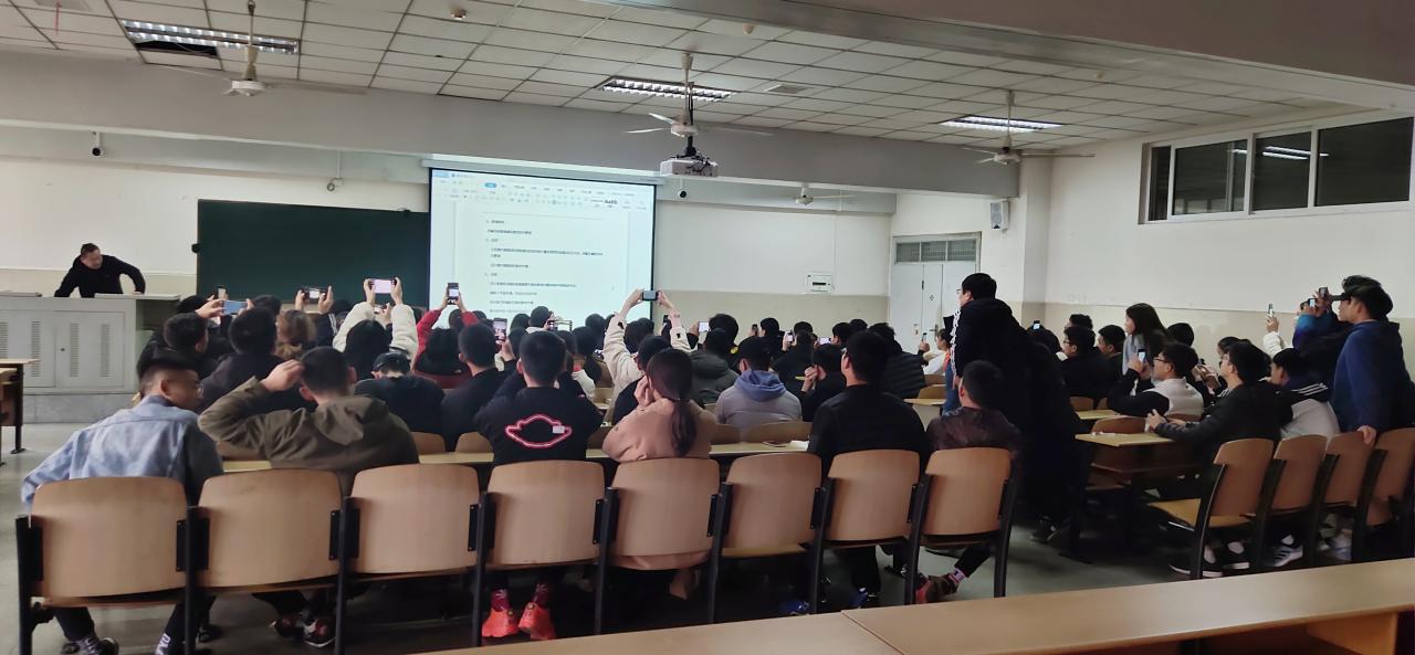 首先,覃老师介绍了教资面试的流程:候考—抽题、备考—考试(入场,结构化问答、试讲、答辩、离场),然后详细讲解了每个环节的重点和注意事项,深入浅出,引人思考,最后以上届学姐面试视频辅助为大家做引导,选取部分真题练手,使学生对教资的面试有了更细致、更深入的了解。然后,袁老师就覃老师讲解做补充,根据自身经验,给予同学们针对性的建议,并提醒大家面试心态和相关面试技巧。整个培训会会气氛活跃,含金量高,学生时不时被两位老师毫无保留的传授所感动,最后大会在一片热烈的掌声中结束。通过本次专题培训,必定能够增强学生备考的信心,提高学生面试技巧,将大大提高学生面试的通过率。