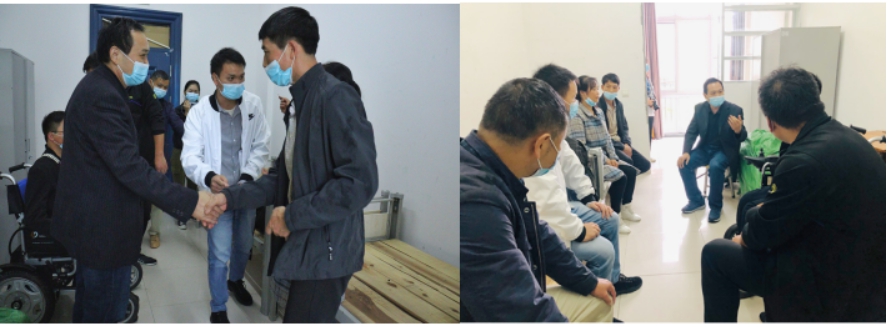 下午13点40分,何情同学和父母顺利出站,张院长、李书记、顾老师热情上前和一家人问好并快速帮助其搬运行李,顶着风雨将行李运上车。一路的谈笑中,大家很快到达了西校区里仁堂宿舍。为方便何情同学的学习和生活,学院早已与后勤协调,为一家人准备了一间温馨宿舍。学工办齐书荣主任早准备好午餐在宿舍楼前迎接何情同学和他的家人。简单的安顿后,院长张相乐代表学院表达了诚挚问候。副书记李则俊给家长介绍了学校和学院对何情同学的具体帮扶。其父母十分感激,多次感谢学校和学院的帮助和关怀。
