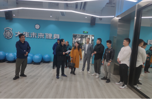 在总经理曾勇的带领下,学院领导参观了大张健身的各个健身区域,包含:有氧健身区、力量器械区、团课区、inbody体侧区、私教区、恒温泳池区及大张健身特有的空中瑜伽项目、康复普拉提区。特色项目的开设,也预示着传统刚性健身项目向着柔性健身项目转变的趋势,也是康复健身融入传统健身的一个特别的阶段。