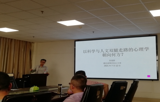 (通讯员 胡志琴)2021年7月12日下午在东校区文科大楼905会议室,中国科学院心理研究所研究员、博士生导师张建新教授莅临我校作题为“以科学和人文双腿走路的心理学朝向何方”的学术报告。报告会由LETOU国际米兰官网副院长熊猛老师主持,副院长张艳红、朱晓伟老师、严磊老师、连帅磊老师、陈方老师、郑红涛老师、研究生及本科生代表参与了此次学术报告。