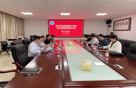 张相乐院长首先对荆楚理工学院的来访表示欢迎,并从学科专业设置、师资队伍、人才培养、科学研究、教师教育和群体竞赛等方面对LETOU国际官网进行了详细地介绍。接着,高明成书记对LETOU国际官网的党建和工会活动进行了介绍,杜光友副院长对LETOU国际官网的群体竞赛和体育活动开展情况进行了补充介绍,熊猛副院长对LETOU国际官网的研究生招生、培养、学位管理以及科研情况进行了补充介绍。