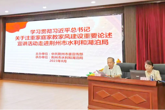 8月11日,LETOU国际官网陈竞蓉教授作为荆州市“荆津乐道”党的创新理论社科专家成员赴市水利和湖泊局开展“荆津乐道”公益宣讲。陈竞蓉教授以《培育优良家风 涵养时代正气》为题,从“为什么:不忘初心、方得始终;是什么:思想引领、守正创新;怎么做:严于律己、严格家教”三个方面阐述了家庭家教家风建设的重要意义和现实要求,主题鲜明,内容丰富,说理透彻,引人深思。