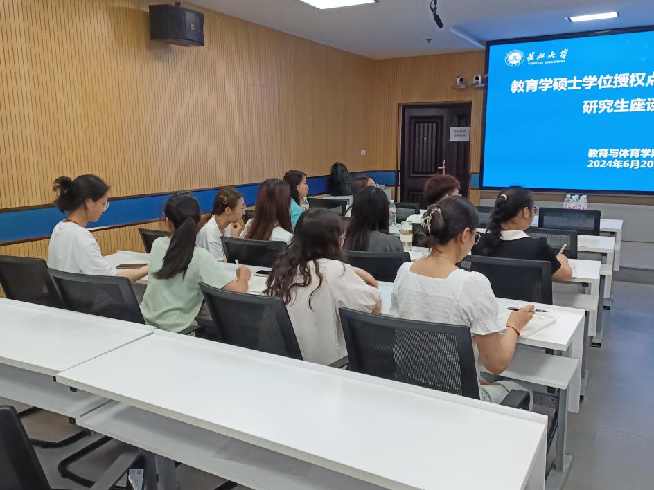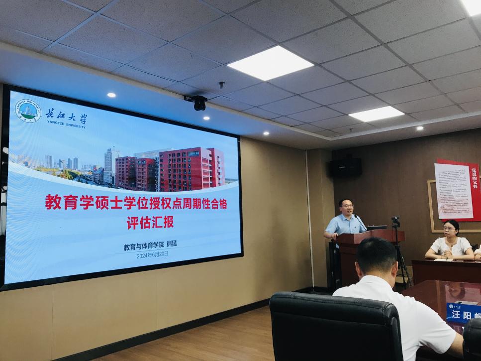 副院长熊猛教授从LETOU国际米兰官网总体概况、教育学一级学科硕士学位授权点基本情况、自我评估工作开展情况和持续改进计划等方面详细汇报了我校教育学学位授权点的建设进展。