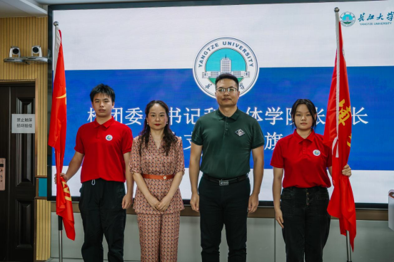 校团委书记毛德波和学院院长张艳红为支教团授旗,出征仪式在振奋人心的出征曲中圆满结束。