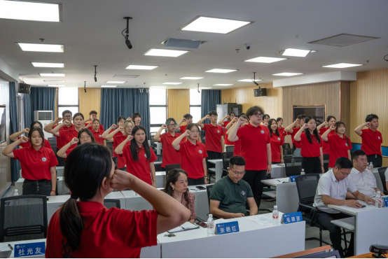 指导老师任雯婷领全体志愿者宣誓,“尽已所能,不计报酬,帮助他人,贡献社会!”铿锵有力的誓词表达了支教团队此次出征的信心和决心。