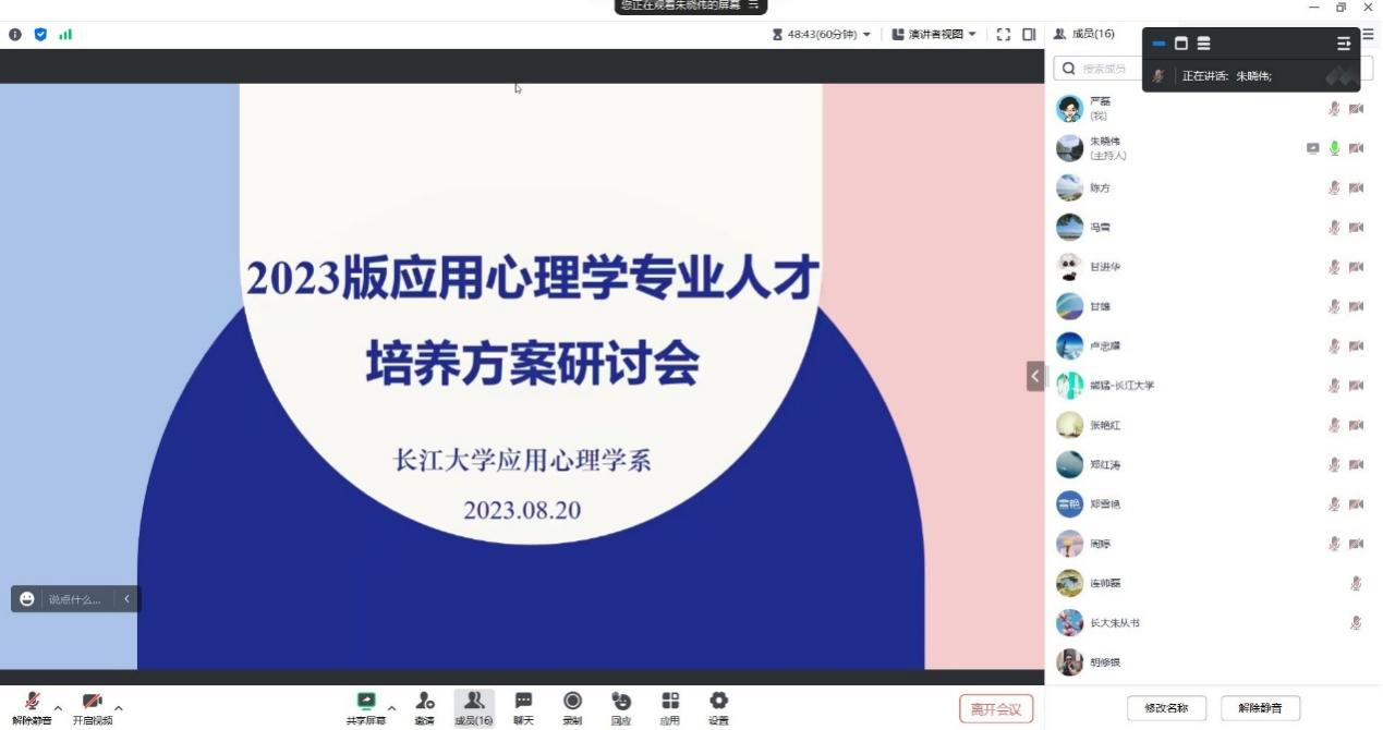 为落实学校关于修订2023版本科专业人才培养方案的工作安排,全面提升应用心理学专业人才培养质量,8月20日晚,LETOU国际米兰官网应用心理学系线上召开2023版应用心理学人才培养方案修订工作研讨会议。学院院长张艳红、副院长熊猛及应用心理学系16位老师参加了本次会议。