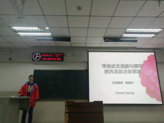 紧接着,课程安排了路国华教授做了“毕业论文选题与撰写的方法及注意事项”专题讲座。路国华教授深入浅出地讲解了体育教学研究论文的写作技巧,以及在撰写过程中需要注意的学术规范和研究伦理,极大地提升了学生们的学术写作能力。