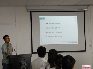 第二阶段为学科骨干教师报告会, 杨坚博士以“教育学研究的热点与前沿”为主题,向大家介绍了“教育学的性质与结构、热点与前沿之相互关系、教育学研究之热点概观、教育学研究之前沿速览”四个方面的内容。在介绍“教育学研究之前沿速览”时,他重点介绍了教育治理研究、儿童的教育学研究、信息技术时代教学改革研究以及中国教育学反思与建构研究等重要课题。最后,杨博士畅谈了他对“未来教育学将会如何发展”的思考,杨博士从体育学视角分析教育学的发展、热点及前沿问题极大的引起了营员们的共鸣。