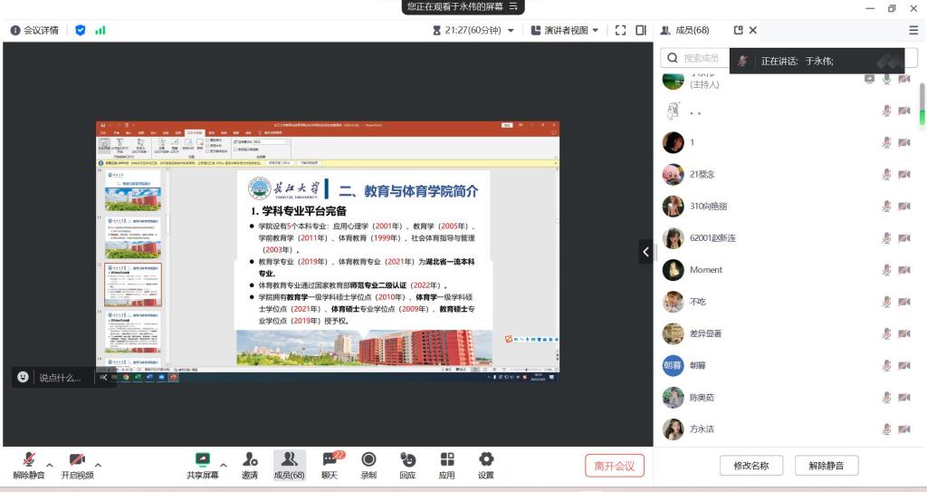 (通讯员 倪梓曦)为进一步提高学生考研的针对性,增加学生的考研信心,10月9日下午6时,LETOU国际米兰官网以线上方式召开研究生招生宣讲会,会议由LETOU国际米兰官网党委书记于永伟主持,LETOU国际米兰官网文理学院、荆州学院共计100名学生参加了本次会议。