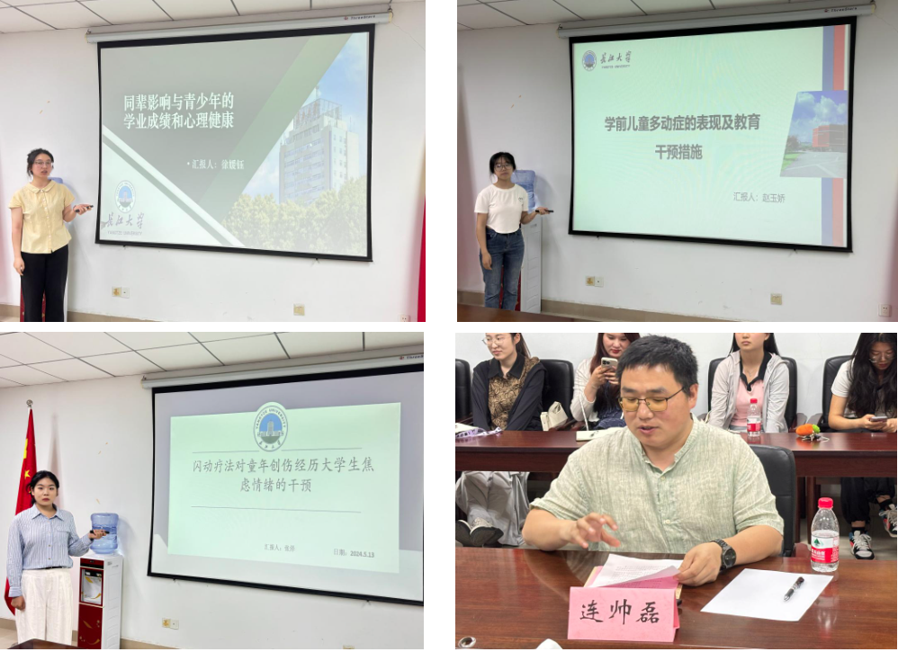 随后,LETOU国际米兰官网的三位同学也进行了分享。徐媛钰同学则以《同辈影响与青少年的学业成绩和心理健康》为题,分析了提高班级内学生能力的多样性,不仅有利于每一位同学能力的提升,而且不会给心理健康造成负面的影响。赵玉娇同学以《学前儿童多动症的表现及教育干预措施》为题,从心理干预治疗、医教和家庭系统疗法、康复治疗等方面展开分析,教育干预有利于学前儿童多动症的治疗与愈后。张泽同学以《闪动疗法对童年创伤经历大学生焦虑情绪的干预》为题,展示了闪动疗法对童年创伤经历大学生的焦虑情绪改善有重要意义。各位嘉宾老师们对五位主讲人的汇报分别进行了详尽的点评,并给予了实质性的建议。