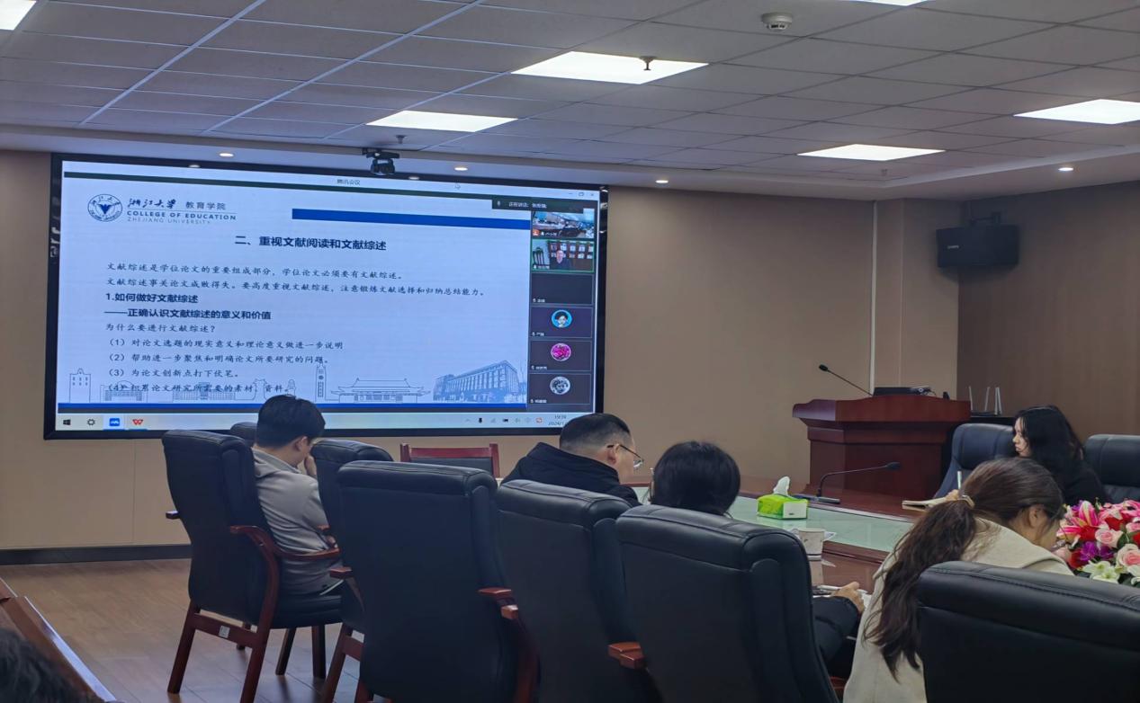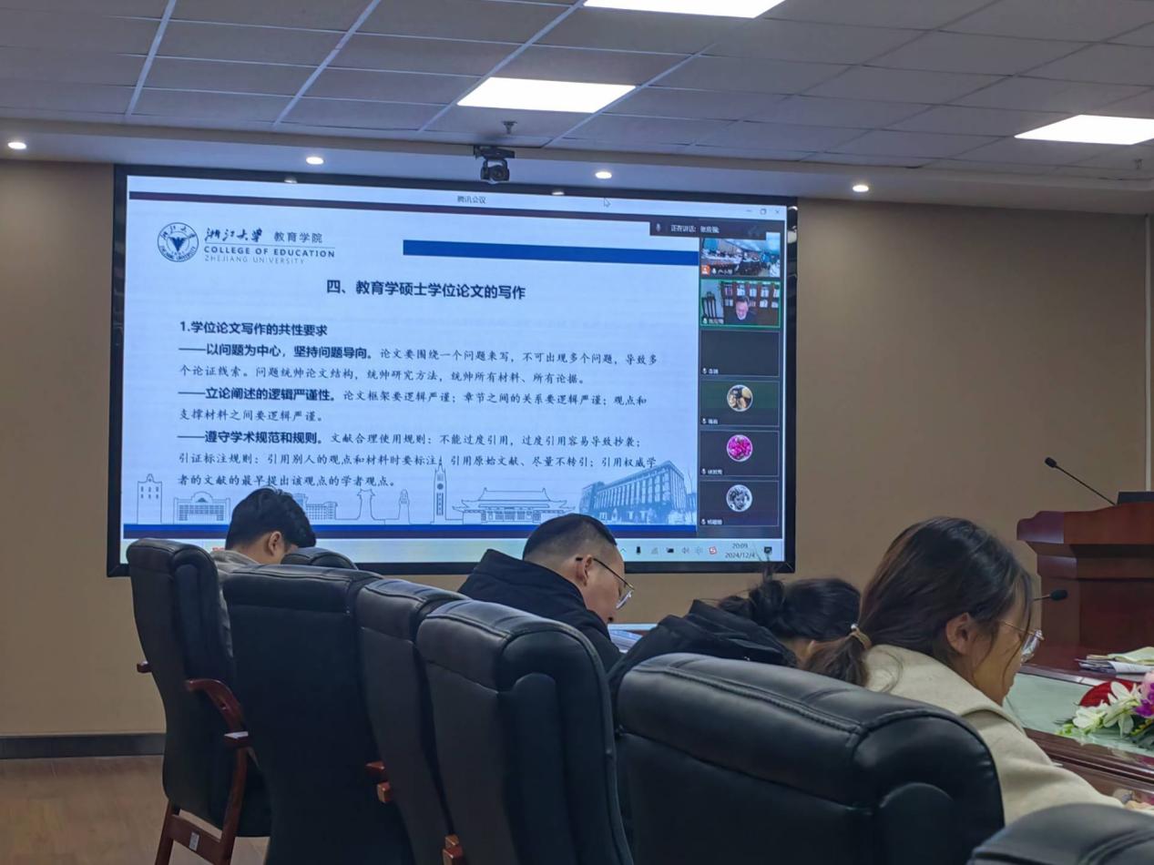 为了强化LETOU国际官网研究生导师培养,提升导师岗位胜任力,全面提高研究生培养质量,尤其是学位论文质量。2024年12月4日晚,LETOU国际官网在文科大楼905会议室举行本学期第二场导师培训,本次特邀浙江大学张应强教授进行线上讲座,讲座主题为《教育学硕士学位论文的选题和写作》,LETOU国际官网教育学专业全体研究生导师参会,培训会由熊猛副院长主持。