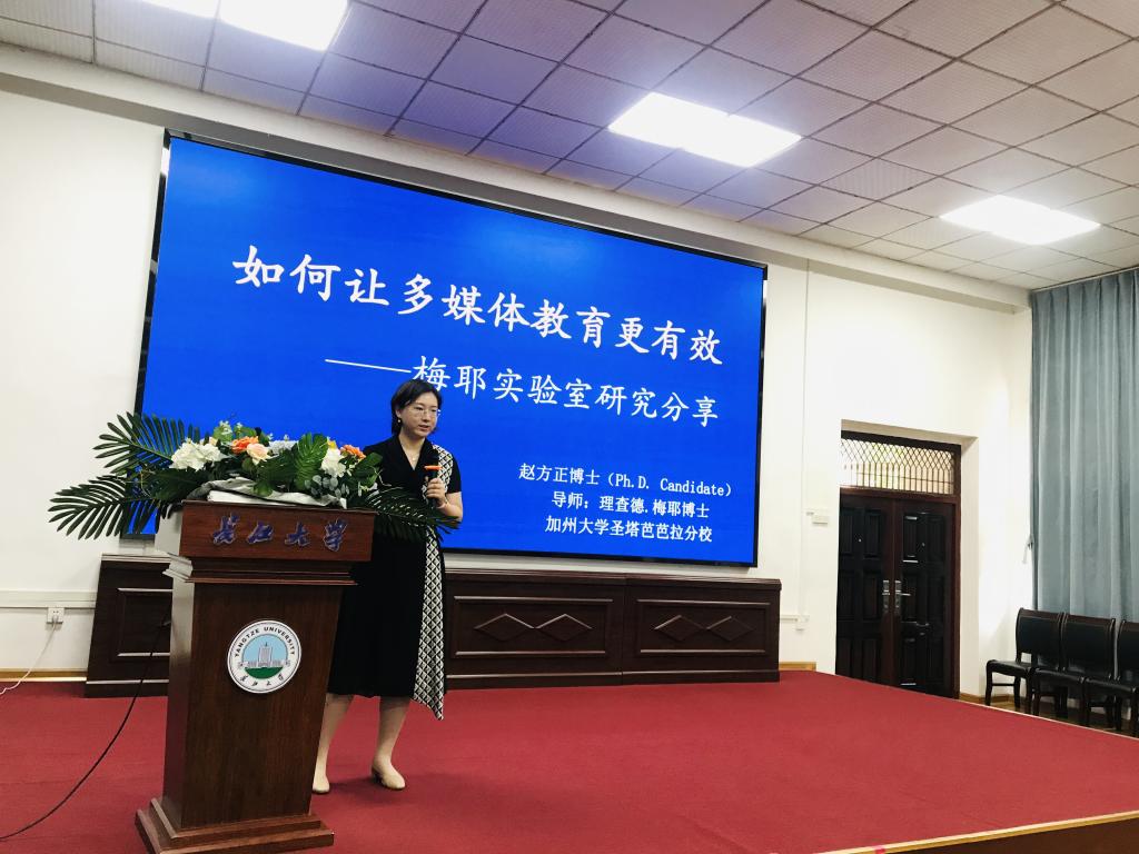 其次,赵方正博士围绕多媒体教育介绍了多个研究。如:从情感角度,探究机器语音传递的情绪与机器语音的性别对多媒体学习的影响;多媒体课程中使用卡通设计与情感设计的拓展研究;认知灵活性的个体差异在游戏学习中的差异性作用;多媒体学习中不同族裔和性别类型的3D建模虚拟人作为教师对学习效果和学习体验的影响等。