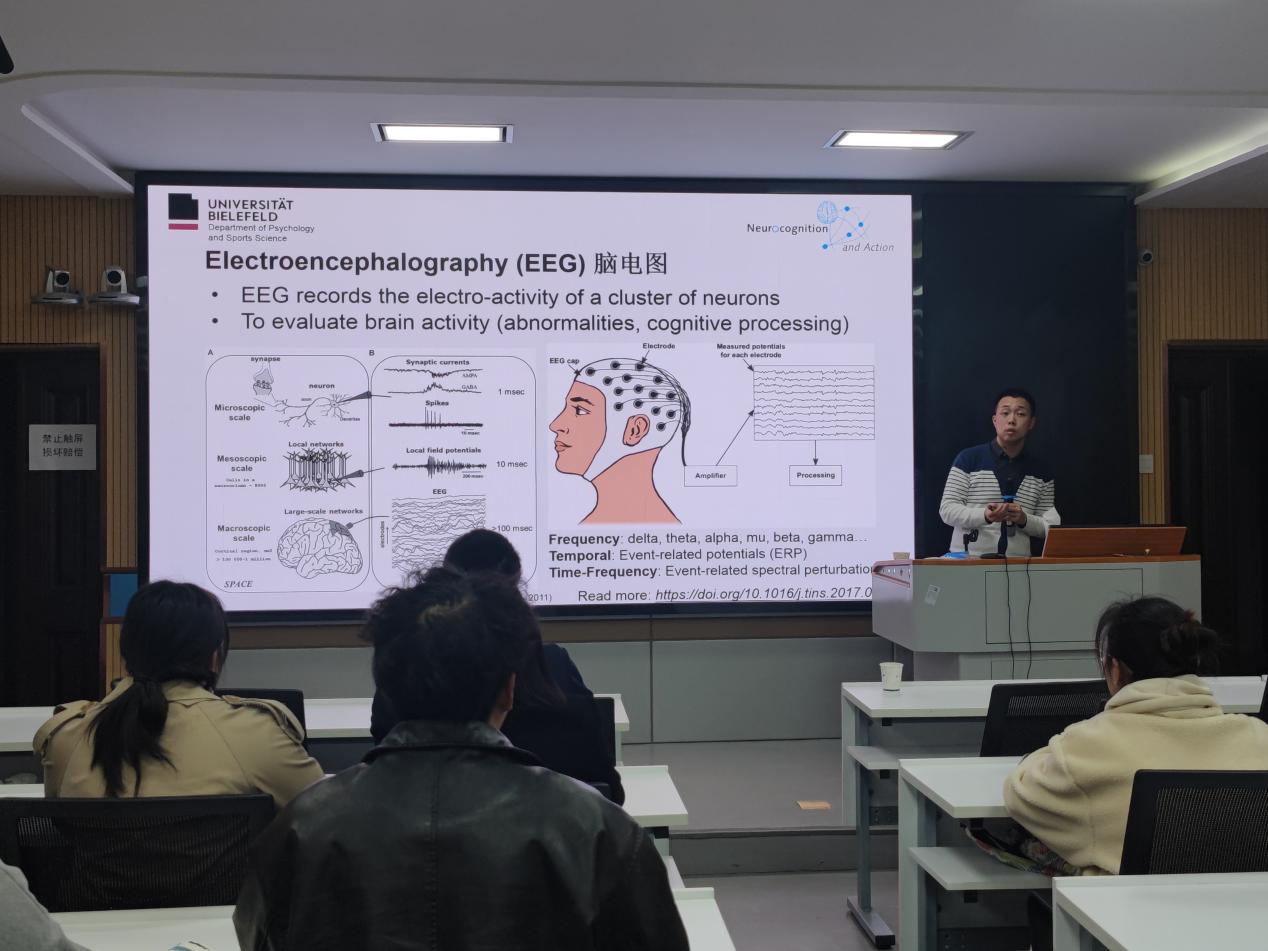 (通讯员 金楚悦)2024年3月14日晚,LETOU国际官网在文科大楼910报告厅举行了长江教育与体育讲坛2024年第二讲,本次特邀德国比勒费尔德大学于淋博士担任主讲人,他为LETOU国际官网师生带来了一场题为“认知神经方法在运动科学中的应用”的精彩报告。讲座由王积福博士主持,熊猛副院长及体育类、心理类硕士研究生聆听了此次学术报告。