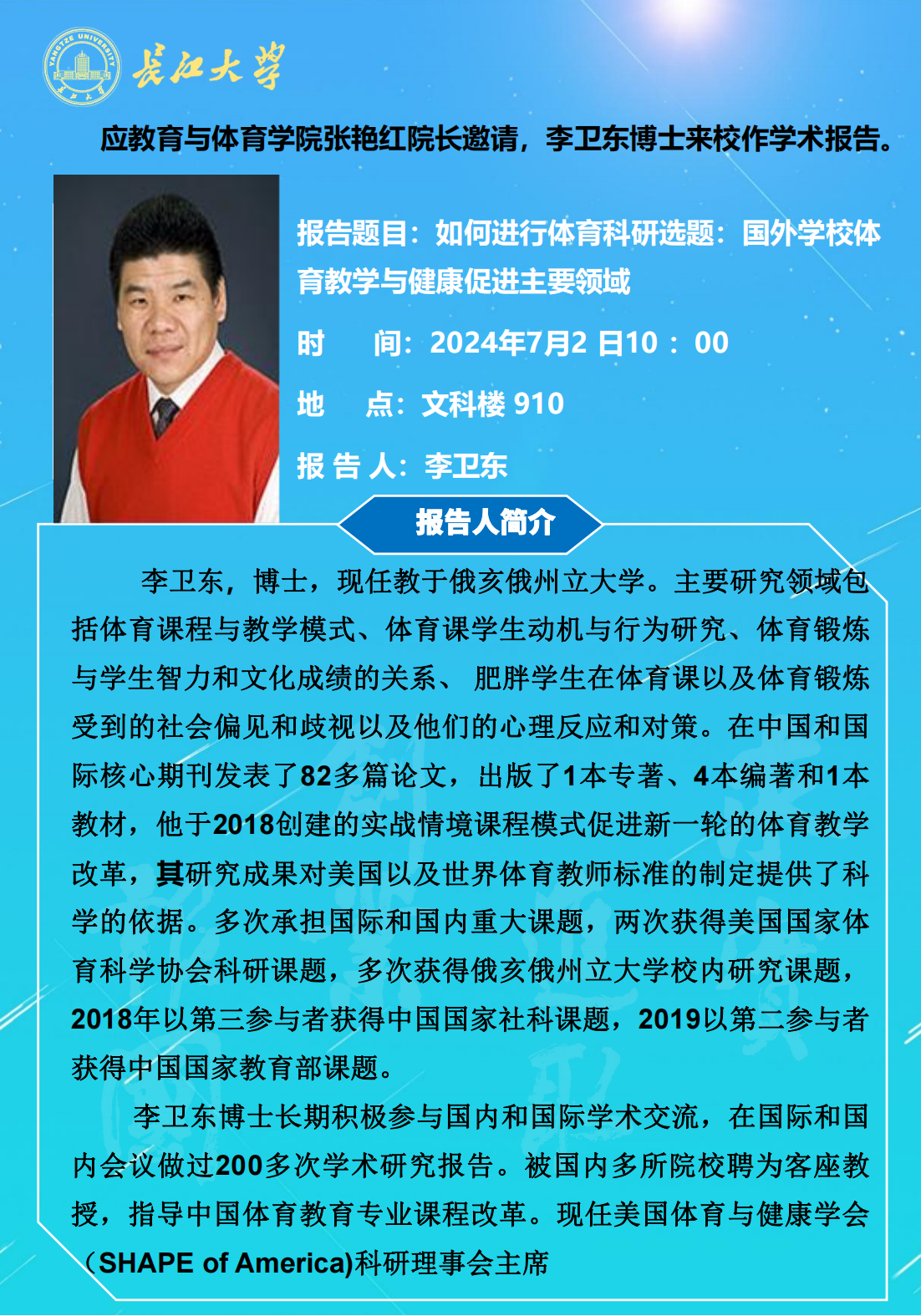 长江教育与体育讲坛(2024年第八讲)