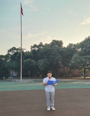 “天地苍苍,乾坤茫茫……少年中国者,则中国少年之责任也,少年强则国强……”,升旗仪式后顾老师带领全体同学集体诵读梁启超《少年中国说》节选片段,同学们慷慨激昂、铿锵有力的声音在操场回荡,向祖国传递着同学们的爱国热情与报国理想。随后顾老师以“从少年强则国强说开去”为题作国旗下讲话,从立志和奋斗两个层面,勉励同学们要勇于肩负起时代赋予我们的责任与使命,做一个有理想、有本领、有担当的人。