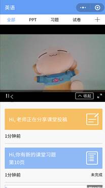 学生端手机端视频直播效果预览如图10所示,无论使用语音直播或视频直播,远程授课可同时进行随堂测试、弹幕、投稿等课堂活动。
