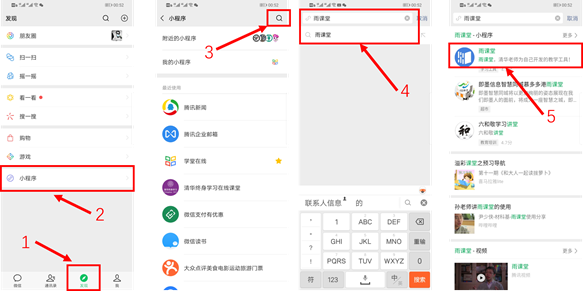 在微信里搜索并进入雨课堂小程序,如图4所示。