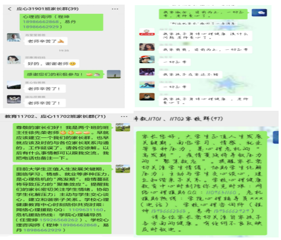 此外,就学生目前可能面临的学习、情感以及就业等方面的压力,各班班主任也在线进行了针对性的引导,一方面鼓励学生,在积极响应学校“停课不停学”的同时,也要克服困难,调整好心态,适应在线学习的新常态;另一方面,积极与学生家长达成共识,建立学院与家长的联动机制,希望家长们积极配合学院的教育教学工作,提醒和监督学生的安全和学习事宜,共同为学生的成长成才打造安全可靠的良好环境。