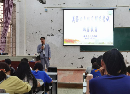 (文/图 涂文谨)“我已认真学习考试有关规定,愿意在考试中自觉遵守各项规定,现在庄严宣誓……自警自律自尊自爱,诚信考试,拒绝作弊”,5月31日晚,5教203教室宣誓声振聋发聩,经过一年的学习和适应,大一学生即将迎来大学里的一场重大考试——英语四级考试。考试不仅是对学生学习情况的评价,更是对学生诚信品质的检验。为了号召全体同学诚信应考,杜绝舞弊,净化考场环境,树立良好学风,LETOU国际官网组织学生召开了诚信考试主题教育大会。