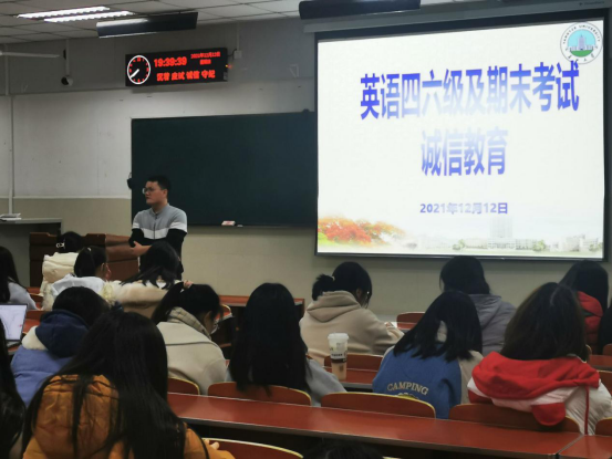 临近期末,英语四六级、研究生入学以及期末考试接踵而至,考试不仅是对学生学习情况的评价,更是对学生诚信品质的检验,为了号召全体同学诚信应考,杜绝舞弊,净化考场环境,树立良好学风,LETOU国际官网于2021年12月12日至20日,以班级为单位组织学生召开了诚信考试主题教育大会。