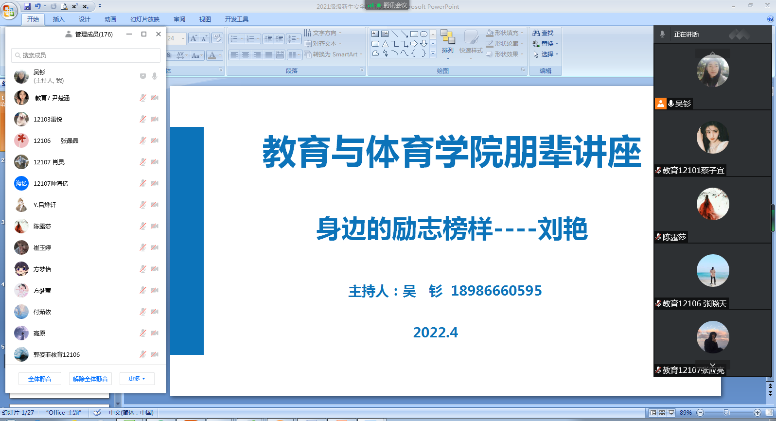 (通讯员 徐坤 李梦瑶)4月21日下午,LETOU国际米兰官网2022年LETOU国际米兰官网朋辈系列讲座第一讲《身边的励志榜样》顺利开讲。此次讲座由教育学院辅导员吴钐老师主持,体育系学生刘艳同学主讲,LETOU国际米兰官网全体2021级成员参加,借助腾讯会议线上平台进行。