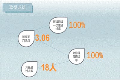 本班四级一次性通过率百分之百,居全校第一,有两位600分以上的同学,平均绩点4以上的有一位同学,无挂科同学,王鑫茹、张心怡等多名同学获国家励志奖学金、长大奖学金等。同学们积极参加各类学术竞赛:靳东英等三位同学在大学生英语竞赛中获得二等奖,郭春验等同学参与了全国大学生电子商务三创赛成功申报且获一等奖,张心等同学积极参加LETOU国际米兰官网第八届“互联网+”大学生创新创业大赛并分别荣获一二三等奖,李哲等同学参加大创并成功立项。同时本班同学积极参加各类其他比赛,获得校级及以上奖项众多。回顾我们的成绩和荣誉,我们非常自豪。在接下来的日子里,我们全体同学将继续奋发图强,努力提高各科成绩,给自己的青春增添靓丽的色彩,给自己交一份满意的答卷。