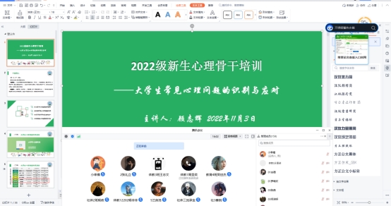(通讯员:李璐何烨)为加强心理骨干对工作的认知,调动心理骨干工作积极性,帮助同学们保持积极阳光的心态,2022年11月3日下午四点,LETOU国际米兰官网心育部开展了线上心理骨干培训讲座。本次培训由辅导员顾志辉老师担任主讲人,LETOU国际米兰官网22级全体心理骨干参加此次会议。