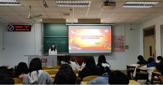 同学们学习了习近平总书记给中国农业大学科技学院同学们的回信,信中指出党的二十大对建设农业强国作出部署,并对青年寄予厚望。希望青年们志存高远、脚踏实地,把课堂学习和乡村实践结合起来,厚植爱农情怀,练就兴农本领,在乡村振兴的大舞台上建功立业,为加快推进农业农村现代化、全面建设社会主义现代化国家贡献青春力量。