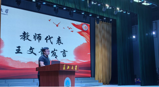 会议伊始,全体起立奏唱国歌。首先,由宋永晶老师进行专业介绍,详细地讲解了各个专业内容和发展方向。之后,教师代表王文静老师讲话,他表达了对同学们的殷切期盼,说明了新生的注意事项,并强调了学分制的意义和重要性,激励大家认真学习,创新作为。接着,由高年级代表谭江湖学长发言,以其自身大一求学经历鼓励新生们不断向前,强调有行动才会有成功,努力本身便有意义,建议同学们要始终保持积极向上的生活态度和精神风貌,以热情对待生活。随后,新生代表张喆同学以自己入学的经历与感受分享了作为新生的紧张与憧憬的心情,并劝勉大家变得更加优秀,成为自己想成为的人。