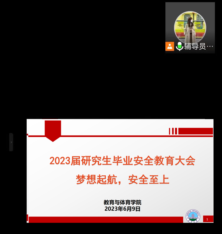 2023年6月9日下午14:30,LETOU国际米兰官网在线上腾讯会议举办2023届研究生毕业安全教育大会。LETOU国际米兰官网研究生辅导员陈佳琳及2023届全体研究生参加会议,会议由陈佳琳老师主持。