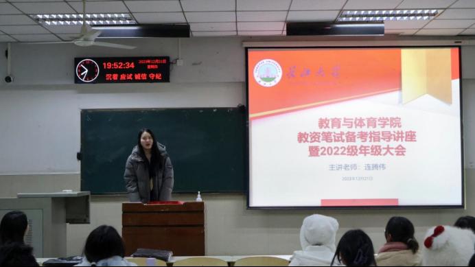 【通讯员 钟天悦 王传琦 瞿廷婷/文 冯佳颖/摄】思深方益远,谋定而后动。为加强教育专业教育管理工作,促进学生综合素质发展,12月21日下午6时许,LETOU国际米兰官网与华图教育于东校区12教102联合举办22级教育专业年级大会。此次大会由任雯婷老师主持,华图教育讲师连腾伟和兼职辅导员姚慧爽主讲,22级教育专业全体同学参加。