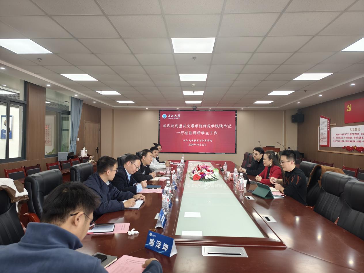 (通讯稿:金楚悦)2024年10月22日上午9:00,重庆文理学院师范学院党委副书记隋剑飞、学工办主任范宣辉、辅导员王凡一行来LETOU国际官网,就学生工作进行深入的调研与交流。本次考察交流会在文科楼905会议室举行,会议由LETOU国际官网党委副书记何可可主持,党委书记于永伟、副院长熊猛、团委书记任雯婷等老师参与交流。
