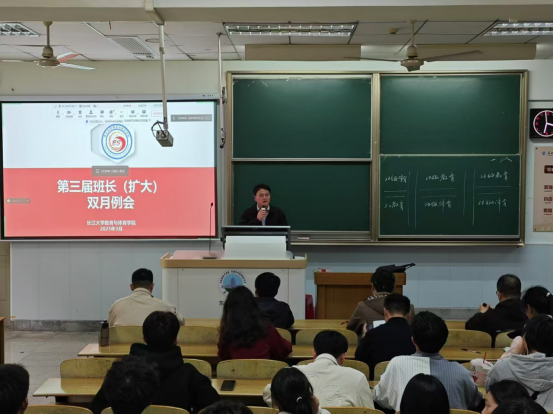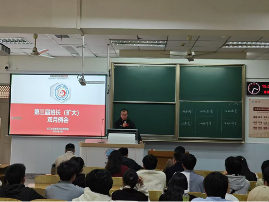 在班委例会经验交流环节,教育12301班班长李石林、社体12402班班长刘季米先后登台分享了班级管理创新实践,为全院班委提供可复制、可推广的鲜活经验。他们强调班级活动不是冷冰冰的形式,而是让每个同学都能成为班级建设的参与者和受益者。