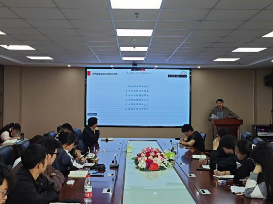 会议第二阶段,何可可副书记结合案例开展专题安全教育。他详细剖析案例事件暴露的校园管理漏洞,包括心理预警机制滞后、周末离校审批流程不严、学生异常动向跟踪不足等问题,要求各班班长引以为戒,切实履行安全职责。
