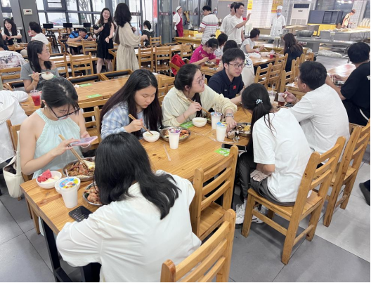 最后,参会人员到达东三食堂举行晚餐交流会,班团干部围绕班级管理难点、特色活动打造等畅所欲言,辅导员融入交流,从专业角度为学生答疑解惑、传授经验。