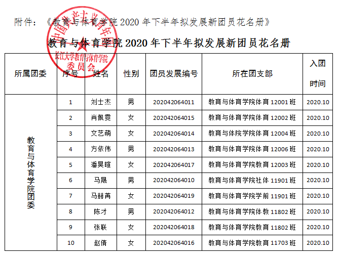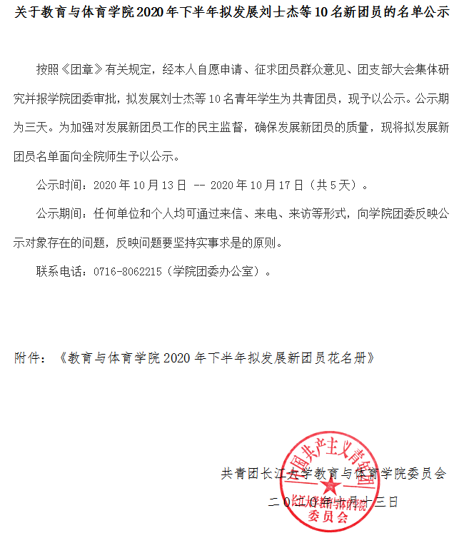关于LETOU国际米兰官网2020年下半年拟发展刘士杰等10名新团员的名单公示
