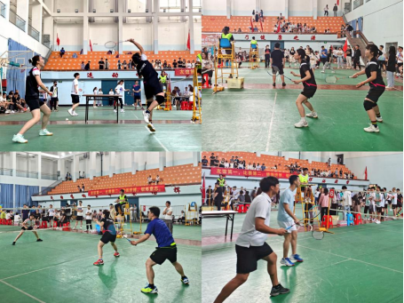 本次大赛设定采用三局两胜11分制,包括女子双打、男子双打、混合双打三个项目。上午8点,比赛在大家的欢呼雀跃声中拉开了序幕。选手们穿着轻便的运动装,斗志昂扬,活跃在各个赛场。只见羽毛球你来我往,让人目不暇接;加油声此起彼伏,赛场热闹非凡。经过一上午的激烈角逐,LETOU国际米兰官网在小组循环赛中以绝对优势在五个学院中排名第一,脱颖而出,成功晋级八强赛。