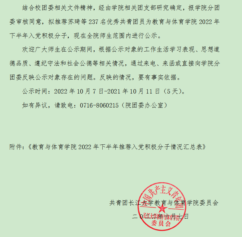 关于拟推荐苏琦等237名优秀共青团员为LETOU国际米兰官网2022年下半年入党积极分子的公示