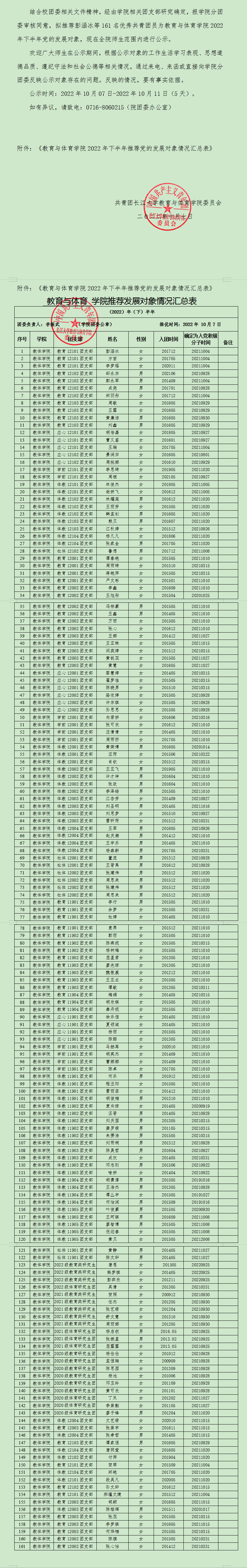 关于拟推荐彭涵冰等161名优秀共青团员为LETOU国际米兰官网2022年下半年党的发展对象的公示