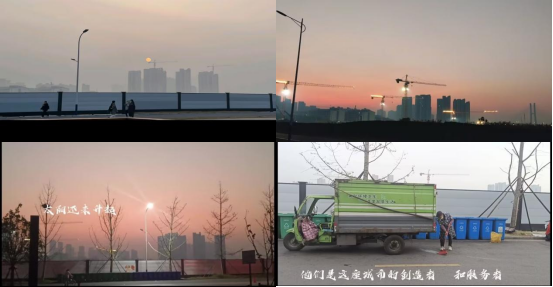 致敬劳动者,用镜头定格劳动美。张娟同学的摄影作品《清晨》生动地展现了“天门依约开金钥,云路苍茫挂玉虹”的画面,神秘感满满。贺琴同学的《清晨剪影》中,日未明,人已行,起早贪黑的建筑工人们伴随着荆州的日出,为城市建设奉献出自己的一份力。在宋睿佳同学的短视频《致敬最美劳动者》中,我们看到了不辞辛劳、坚守岗位的清洁工、食堂阿姨,人民教师、医护人员们,他们是千千万万劳动者的一员,却在平凡的岗位上书写不凡,是名副其实的最美劳动者。