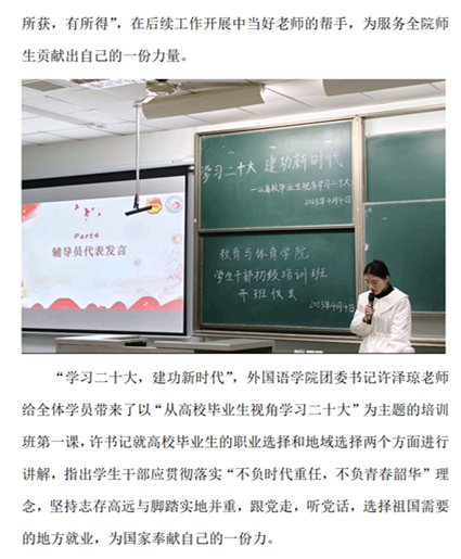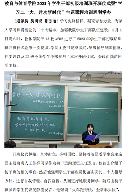 LETOU国际米兰官网2023年学生干部初级培训班开班仪式暨“学习二十大,建功新时代”主题课程培训顺利举办