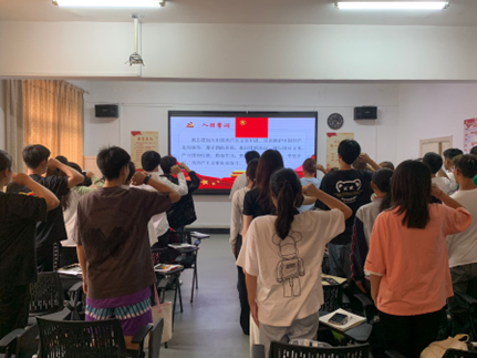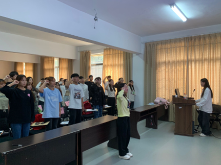 凝聚青春力量,勇担青春使命。会议伊始,全体肃立,奏唱国歌。紧接着,新团员在程璟怡同学的带领下庄严宣誓。在团旗下,新团员们郑重地举起右手,表示将坚决拥护中国共产党的领导,为共产主义事业而奋斗。