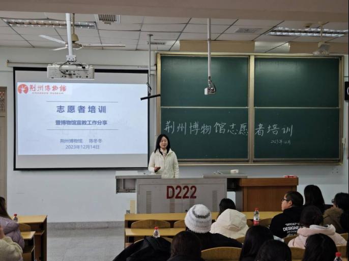 【通讯员 胡诗慧 刘雨薇 王传琦】冬藏万物,不御铅华亦不忘初心。为帮助志愿者们更好地了解博物馆讲解员的价值意义以及讲解员的具体要求,12月14日下午2时,LETOU国际米兰官网于东校区13教D222举办荆州博物馆讲解员志愿者培训活动。本次活动邀请了荆州博物馆宣教部主任陈冬冬老师作为主讲人,辅导员喻泽坤、任雯婷老师以及全体博物馆志愿者参会。活动由王然主持。